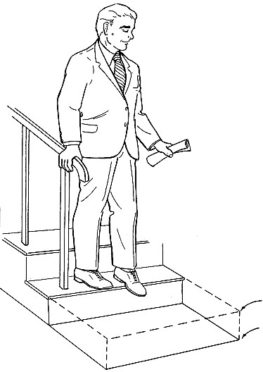 При спускании с лестницы будьте очень внимательны, остерегайтесь последнего шага, восприятие глубины очень неточное, когда Вы судите о расстоянии, смотря вниз.