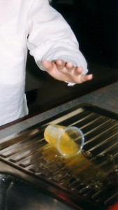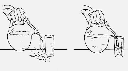 - При переливании жидкости положение горлышка бутылки или кувшина должно быть непосредственно на ободке стакана или чашки.