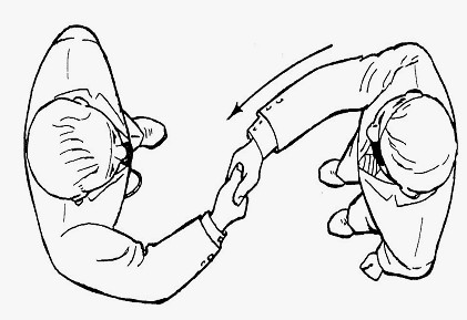 Чтобы не промахнуться при рукопожатии, Вам надо переместить свою руку в прямую линию к протянутой Вам руке и продолжить тянуться к ней, пока не коснетесь ее. Эта техника, одинаково полезна в достижении ручки двери, книги в книжном шкафу, или стакане воды на столе.