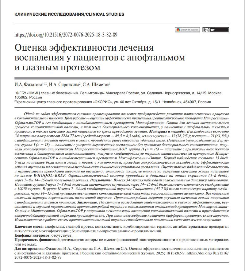 Наши достижения в текущем году радуют масштабами. От коллектива авторов опубликована статья о лечении при использовании глазного протеза.